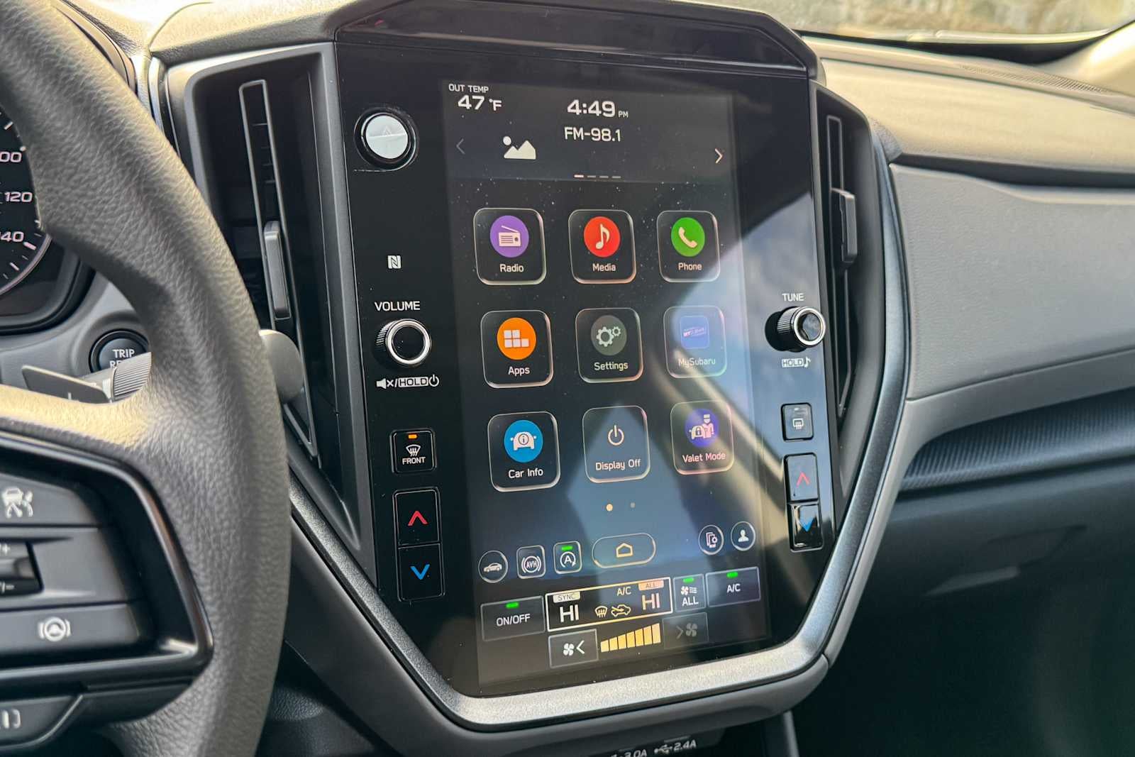 - Radio: Subaru 11.6" Multimedia Plus System -inc: AM/FM stereo, HD Radio, multi-touch gesture high resolution display screen, voice activated controls, Bluetooth® audio streaming and hands-free phone connectivity, Bluetooth® hands-free SMS text messaging connectivity, iPod control capability, smartphone integration: wired and wireless Android Auto w/full screen view and wireless Apple CarPlay w/full screen view, USB and Over The Air (OTA) audio system update, steering wheel audio system and Bluetooth® control switches, 6 speakers (2 dash panel tweeter, 2 front door and 2 rear door), illuminated 3.5mm auxiliary input jack, illuminated front USB A and C input/charge ports, connected services operation indicator, SOS emergency assistance: red SOS button and enhanced roadside assistance: blue i-button