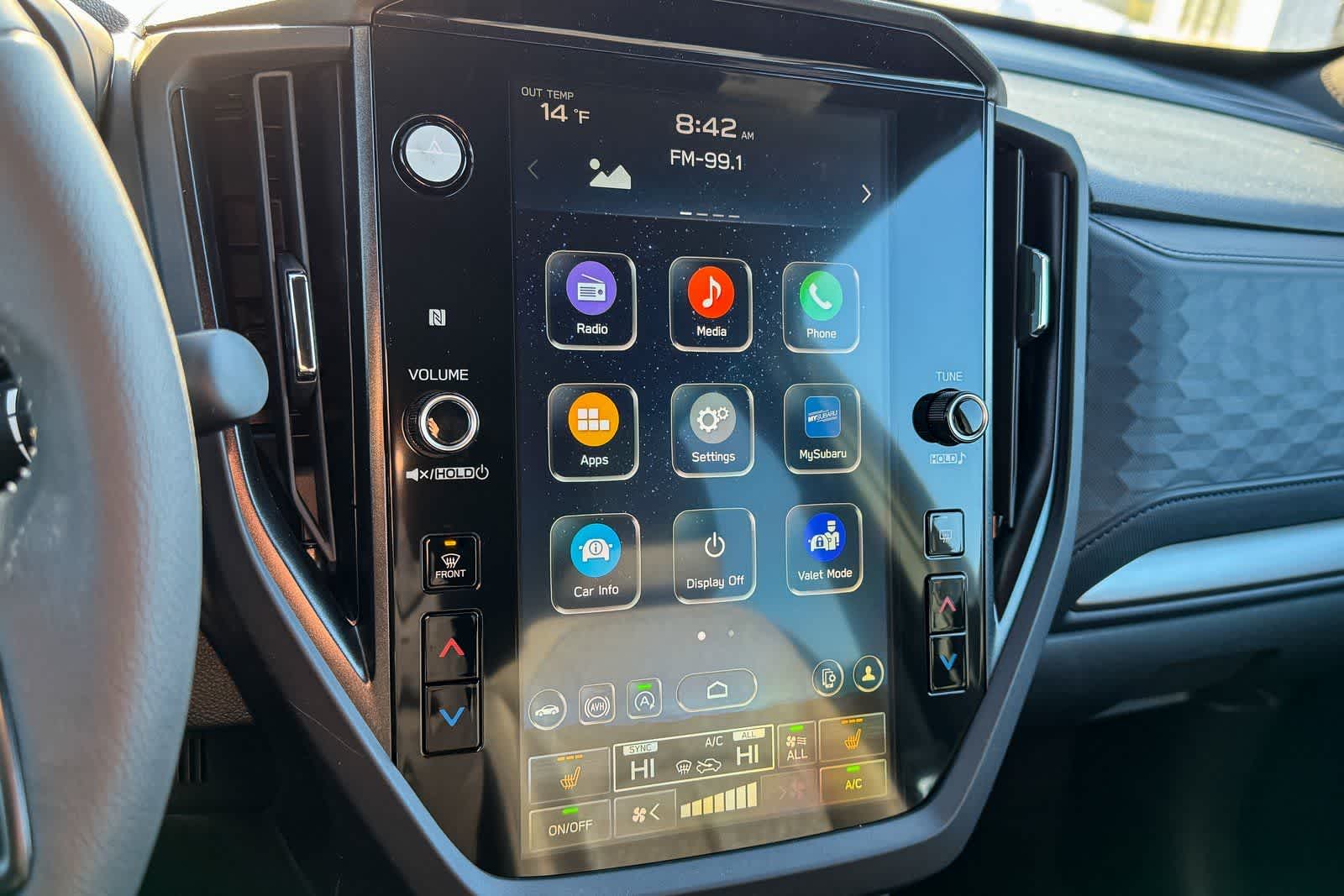 - Radio: Subaru 11.6" Multimedia Plus System -inc: valet mode, integrated center information display, AM/FM stereo HD Radio, multi-touch gesture high resolution display screen, voice activated controls, Bluetooth® audio streaming and hands-free phone connectivity w/SMS text messaging (refer to Subaru.com for cellphone compatibility), iPod control capability, smartphone integration: Android Auto and Apple CarPlay w/full screen view and wireless connection, SiriusXM satellite radio w/360L (free 4-month trial subscription included), USB and Over The Air (OTA) audio system update, steering wheel controls, 6 speakers, 3.5mm auxiliary input jack and roof mounted audio and satellite antenna