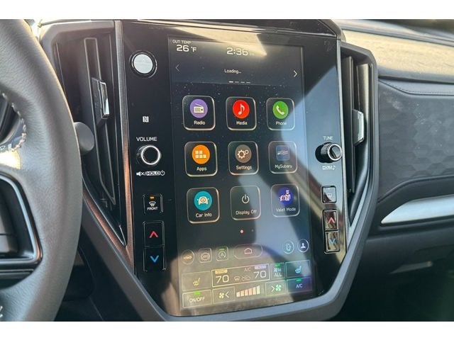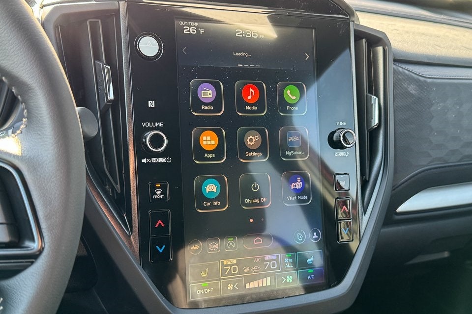 - Radio: Subaru 11.6" Multimedia Plus System -inc: valet mode, integrated center information display, AM/FM stereo HD Radio, multi-touch gesture high resolution display screen, voice activated controls, Bluetooth® audio streaming and hands-free phone connectivity w/SMS text messaging (refer to Subaru.com for cellphone compatibility), iPod control capability, smartphone integration: Android Auto and Apple CarPlay w/full screen view and wireless connection, SiriusXM satellite radio w/360L (free 4-month trial subscription included), USB and Over The Air (OTA) audio system update, steering wheel controls, 6 speakers, 3.5mm auxiliary input jack and roof mounted audio and satellite antenna