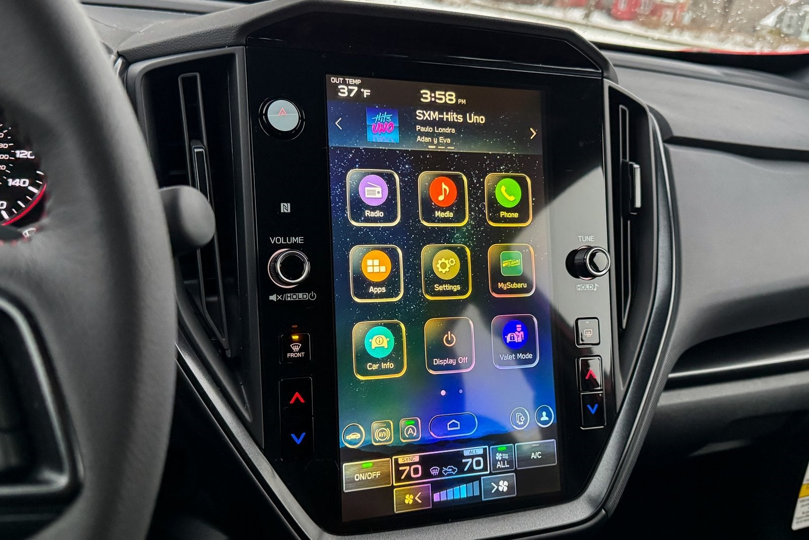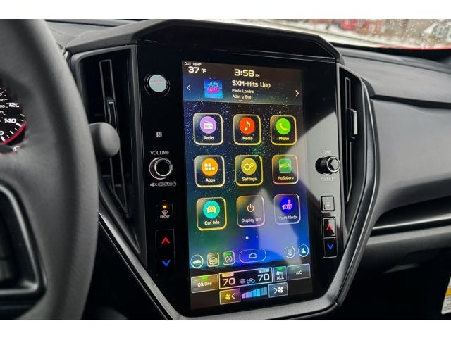 - Radio: Subaru 11.6" Multimedia Plus System -inc: valet mode, AM/FM stereo, HD Radio, multi-touch gesture high resolution display screen, voice activated controls, Bluetooth® audio streaming and hands-free phone connectivity, Bluetooth® hands-free SMS text messaging connectivity, iPod control capability, smartphone integration: wired and wireless Android Auto w/full screen view, wireless Apple CarPlay w/full screen view and wireless connection, USB and Over The Air (OTA) audio system update, audio system and Bluetooth® steering wheel control switches, 6 speakers (2 dash panel tweeter, 2 front door, 2 rear door), illuminated 3.5mm auxiliary input jack, illuminated USB A and C input charge ports, roof mounted satellite and connected services, roof mounted black antenna, connected services operation indicator, SOS emergency assistance (red button) and ehanced roadside assistance (blue i-button)