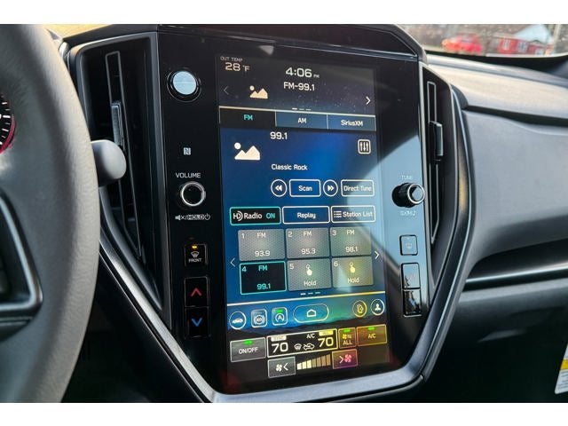 - Radio: Subaru 11.6" Multimedia Plus System -inc: valet mode, AM/FM stereo, HD Radio, multi-touch gesture high resolution display screen, voice activated controls, Bluetooth® audio streaming and hands-free phone connectivity, Bluetooth® hands-free SMS text messaging connectivity, iPod control capability, smartphone integration: wired and wireless Android Auto w/full screen view, wireless Apple CarPlay w/full screen view and wireless connection, USB and Over The Air (OTA) audio system update, audio system and Bluetooth® steering wheel control switches, 6 speakers (2 dash panel tweeter, 2 front door, 2 rear door), illuminated 3.5mm auxiliary input jack, illuminated USB A and C input charge ports, roof mounted satellite and connected services, roof mounted black antenna, connected services operation indicator, SOS emergency assistance (red button) and ehanced roadside assistance (blue i-button)